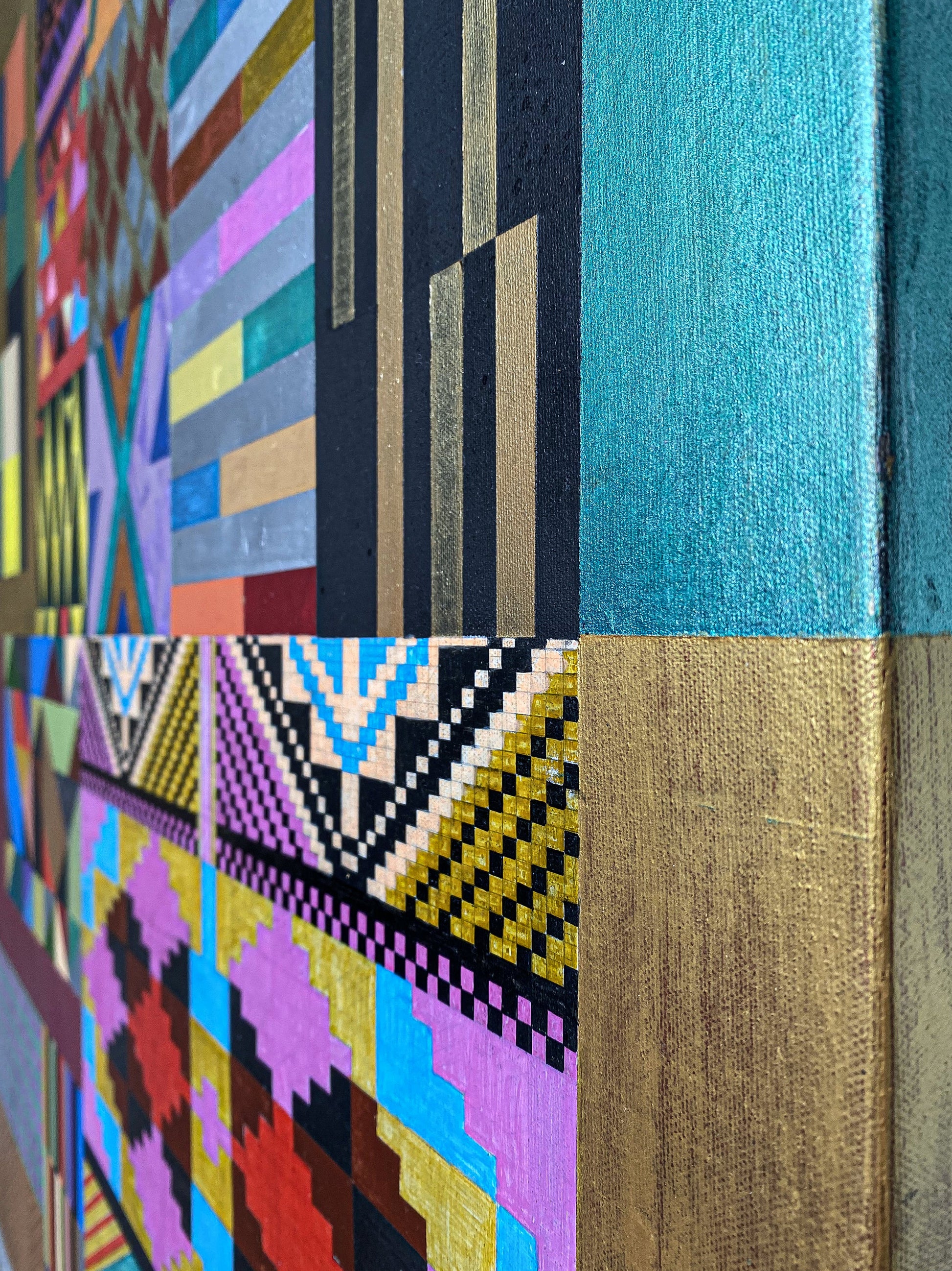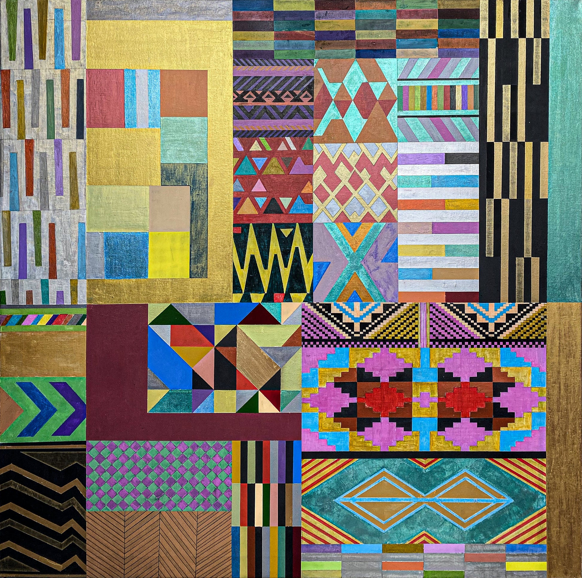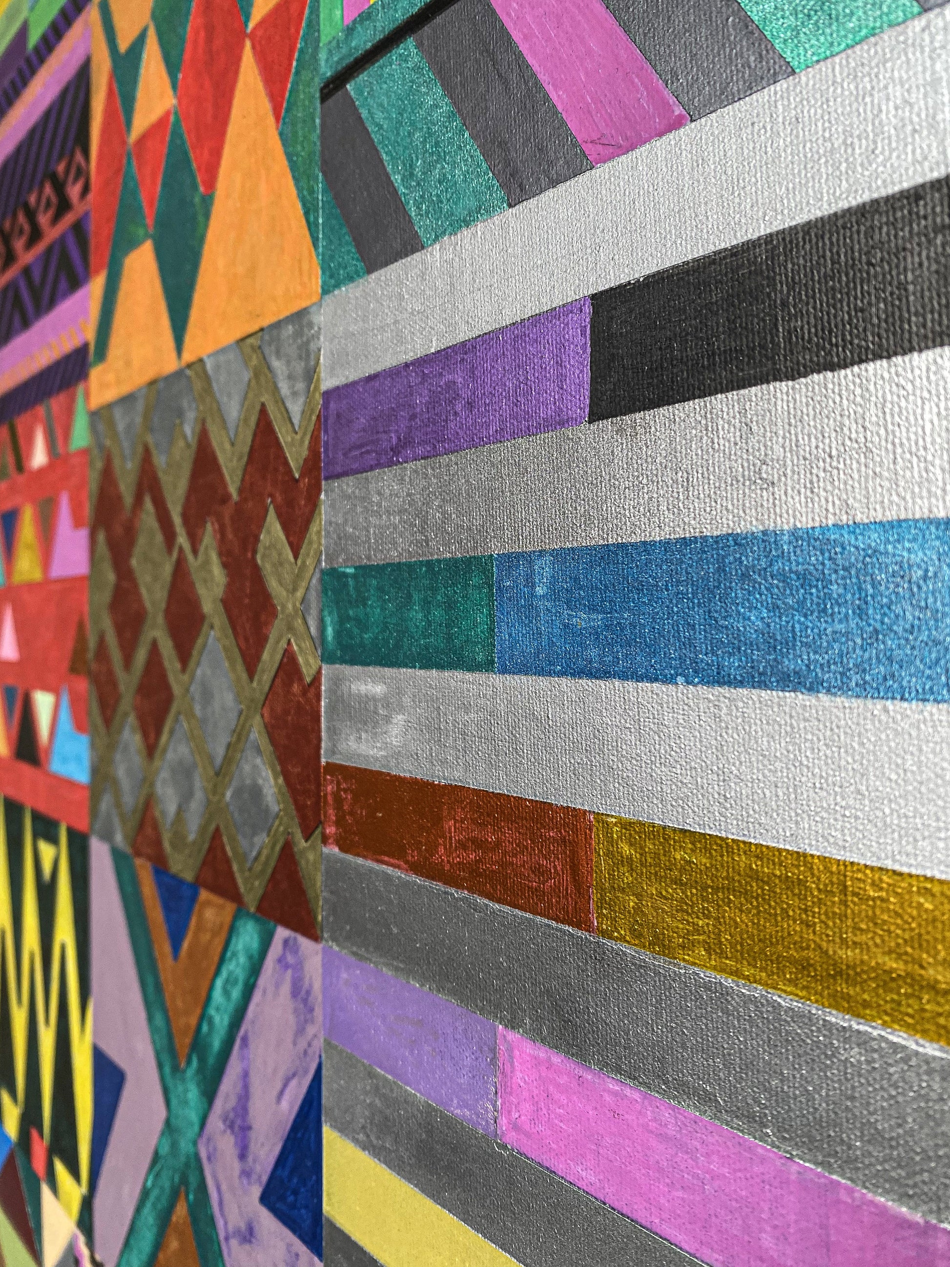 A mosaic of fragments—textile codes, architectural stripes, and chromatic tiles—assembled into a disciplined grid. The work carries the spirit of ornament without becoming decorative; it builds a contemporary language where East–West visual traditions meet under a modernist order.In this composition, Venice is not depicted—it is translated: light becomes color blocks, streets become stripes, and historic surfaces become a quiet geometry you can live with.