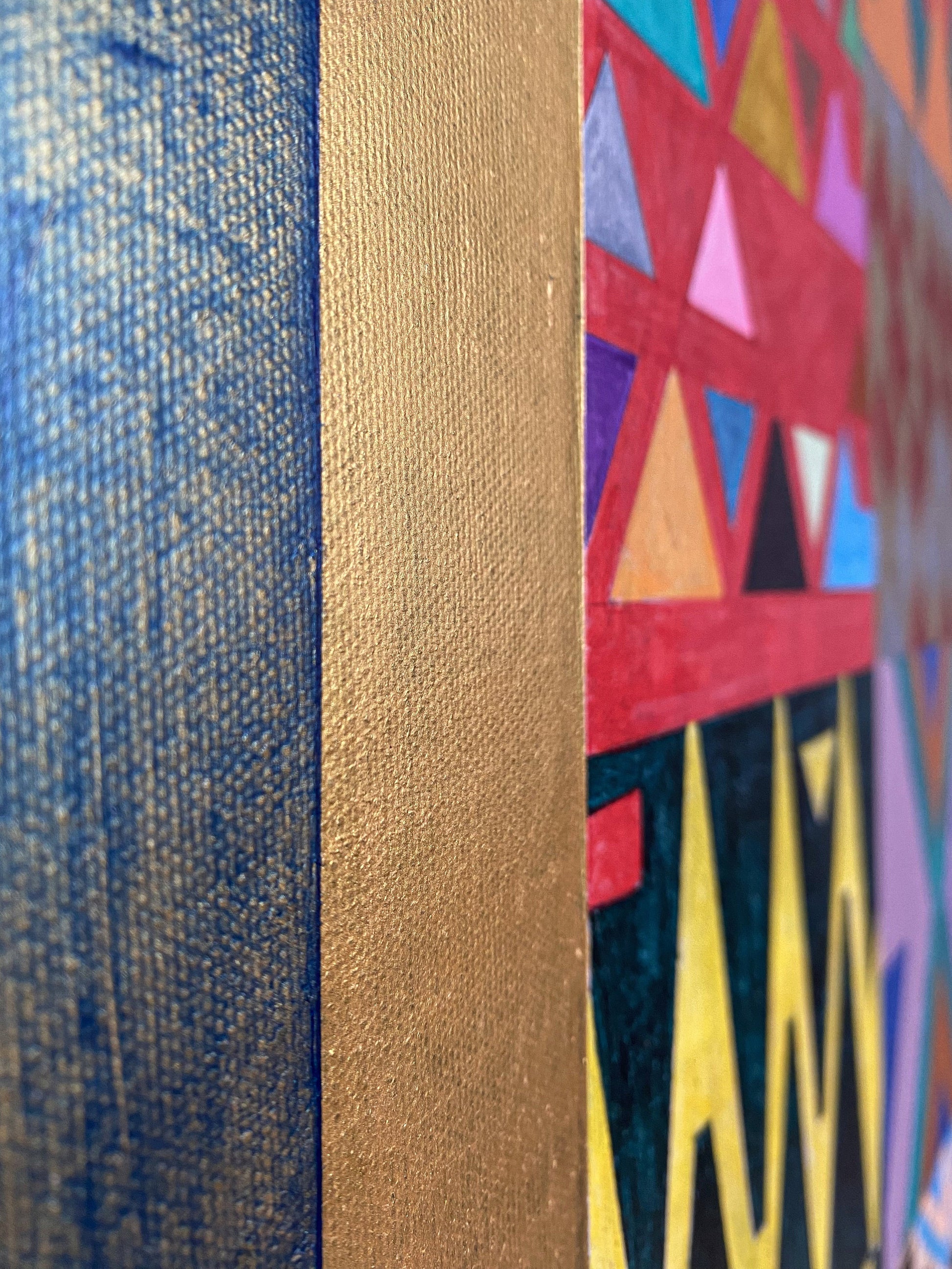We work on a carefully primed canvas and apply acrylic directly to the surface. The goal is structural clarity: a perfectly flat surface, a visible canvas feel and a clean impression of the mix of metallic and vintage colors that combine the rich history of this magical city with today's glamour and artistic atmosphere.