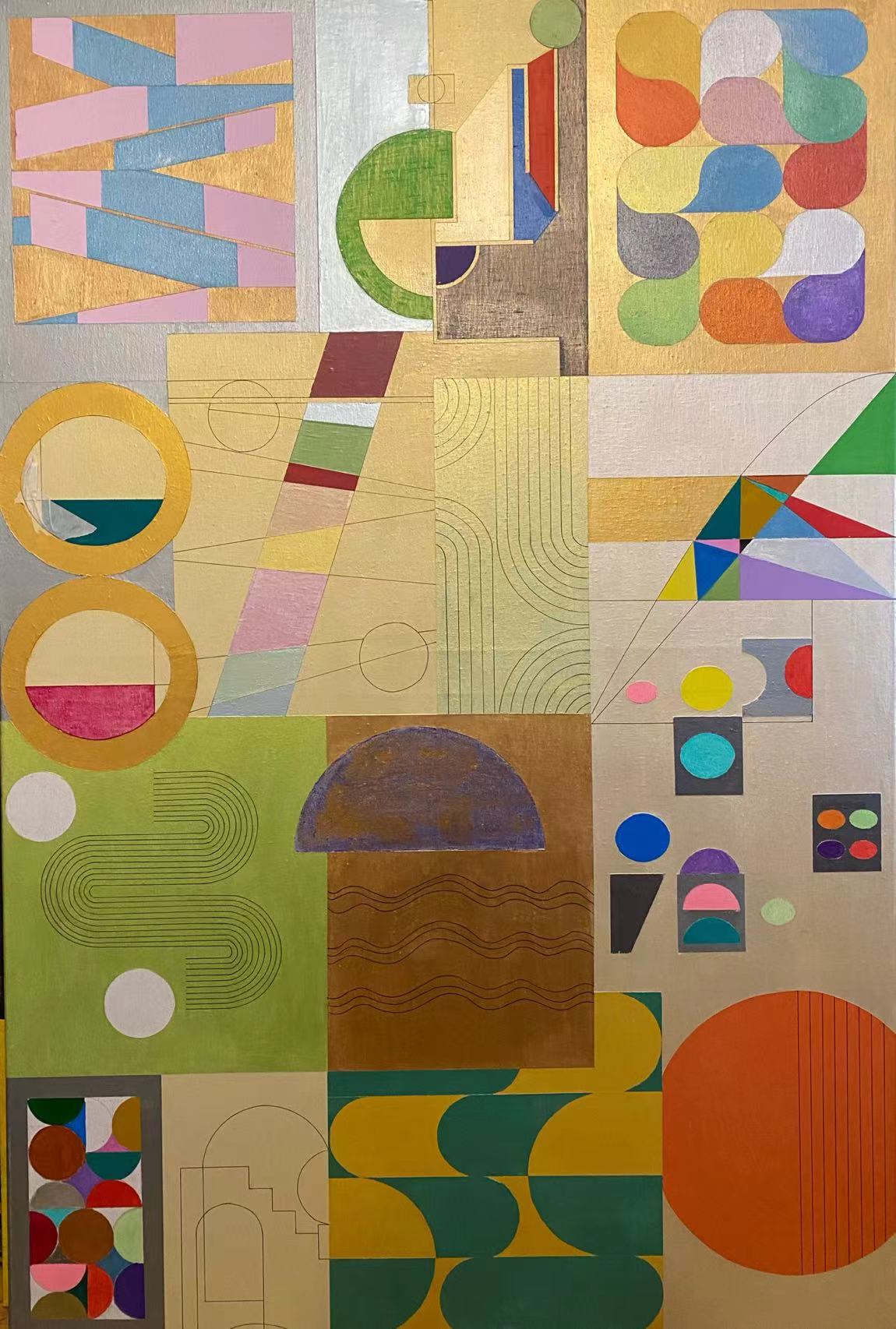 A calm but complex composition built from layered colour fields and small symbolic units. Part of the “Archive of Fragments” series, this painting gathers memories and signs into a quiet grid – each square holding a different mood, texture or story.The work reflects PELLESCURA’s architectural approach to painting: structure first, then emotion. Geometry, colour and surface are used as containers for identity and time, rather than as decoration.